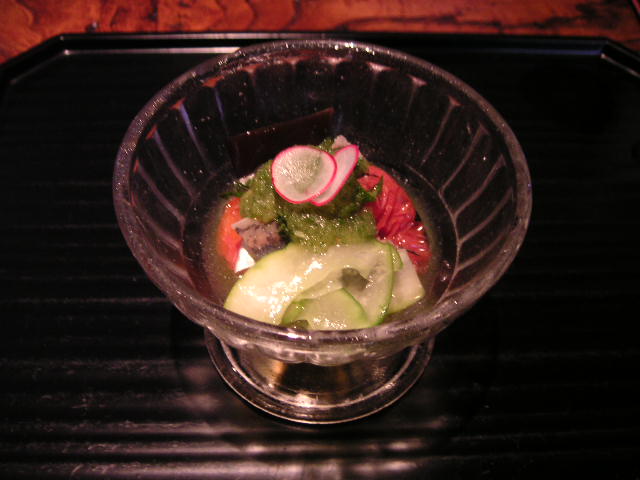 お店は「上賀茂 御料理 秋山」。今年2月オープンのまだあたらしい店で、ネットでみる評判はとてもよい。実際、料理もおいしく感じもよかった。これは流行るよ。今回食べた中では鱧がとんでもなくうまかった。以前、えのもとで食べた鱧の刺身もうまかったが、それをはるかに凌駕していた。秋山の鱧は生ではなく湯通ししてあったが、舌の上でほろりと溶ける感じがなんともすばらしかった。他の料理もおいしく、ボリュームもそこそこあって満足でした。