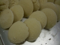 5、 イドゥリー(南インドの蒸しパン 19時に位置するレンズ状の白いもの)